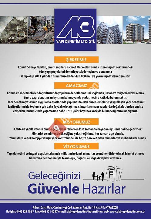 Şirketimiz 4708 Sayılı Yapı Denetimi Hakkında Kanun hükümlerine göre 2011 yılında kurulmuş olup 01.01.2011 tarihinde T.C. Bayındırlık ve İskan Bakanlığı izni ile faaliyete geçmiştir.