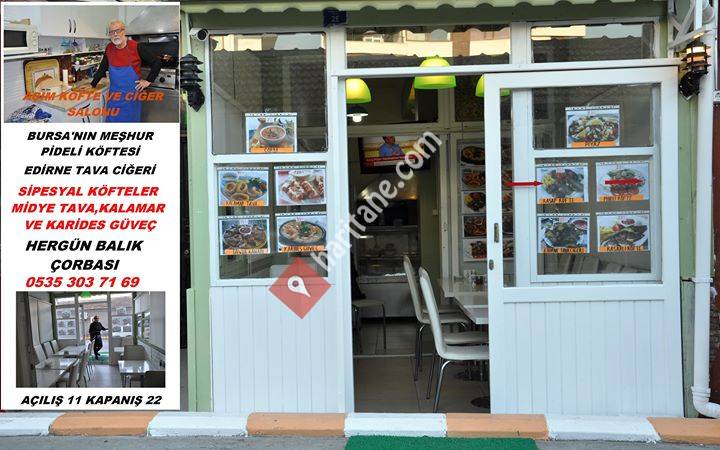 Bursa'nın meşhur Pideli köftesi,Edinenin meşhur Yaprak ciğeri,Balık çorbası,Kalamar,Karides güveç