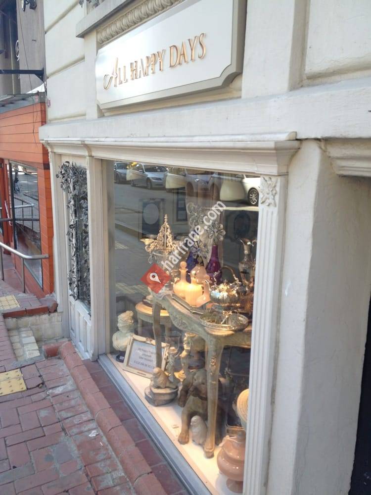 "Mekan tasarımcıları Petek Güven ve Bülent Güven tarafından 2010 yılının ilk gününde Nişantaşı'nın tarihi apartmanlarından birinde kapılarını dekorasyon tutkunlarına açan All Happy Days, Provance tarzının sıcak ve romantik, barok tarzının elegans ve sofistik çizgilerini koleksiyonlarına yansıtan bir dekorasyon ve yaşam tarzı markasıdır."