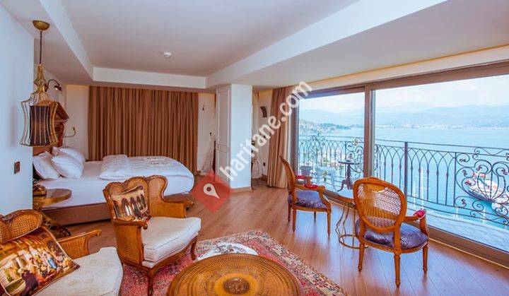 Fethiye Körfezine kuşbakışı konumu ile Casa Margot Galeri Hotel her Mevsim sınırsız doğa ve deniz manzarası sunar