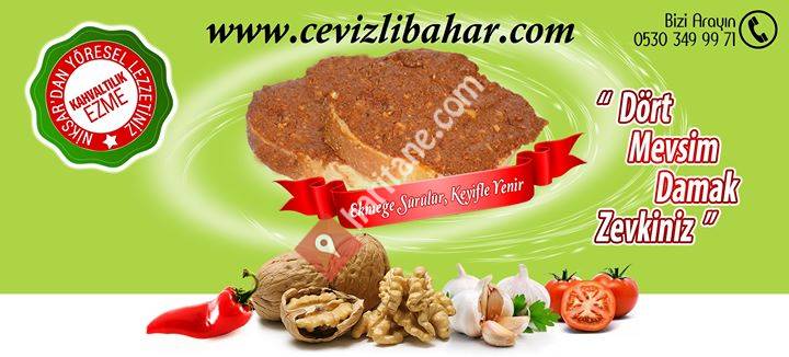 "Coğrafi işaret tescilli Niksar cevizinden dört mevsim damak tadınız cevizli bahar üretmekteyiz. Ekmeğe sürülür keyifle yenir. Ayrıca Tokat Çemeni imalatımız ve Niksar Cevizi paket ve toptan satışımız bulunmaktadır. Niksar'a ait diğer doğal yöresel ürünleri kuşburnu,pekmez,salça,turşu,erişte,tarhana,yaprak de bulabilirsiniz."