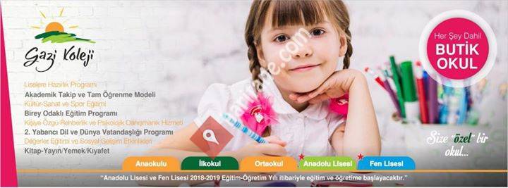 GAZİ KOLEJİ Uzman Öğretmen ve Eğitim Yöneticisi Savaş BEKTAŞOĞLU tarafından 2015 Yılında kurulmuştur. Gaziantep'in en nezih ve düzenli semtinde bulunan kampüs alanında, iki binadan oluşan bir eğitim yapısı bulunmaktadır.