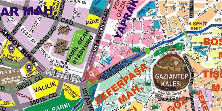GAZİANTEP KENT PLANI Haritası 150 cm X 200 cm ebatında baskıya hazır. Şehitkamil İlçe sine bağlı 66 Mahalle, Şahinbey İlçesine bağlı 106 Mahalle