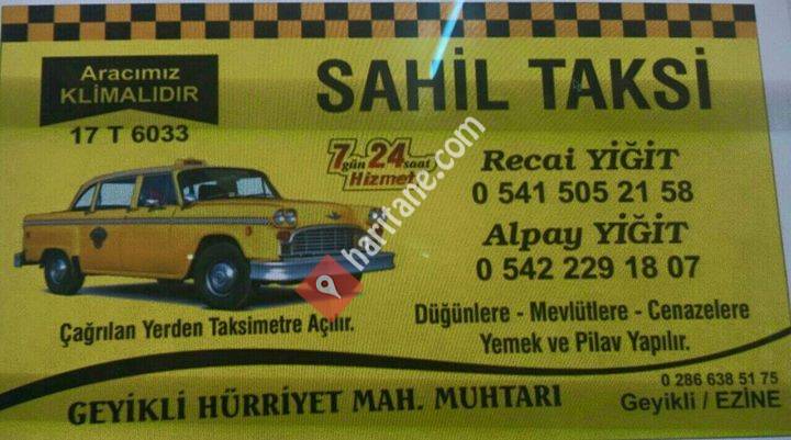 7/24 Hizmet Sahil Taksi Alpay Yiğit