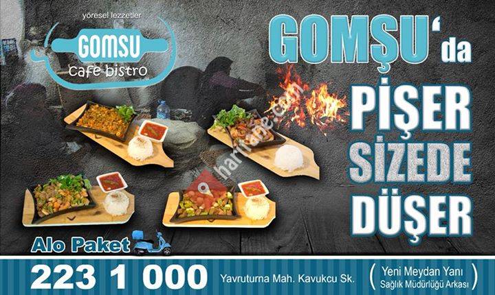 "Arkadaşlarınızla buluşmak veya ailenizle huzurla bir fincan kahve içmek mi istiyorsunuz? Kafemiz güzel bir ortama değer verenler için doğru adrestir. gomşu cafe kafemiz güler yüzlü hizmet, keyifli bir ortam ve kahve içmek, yemek yemek veya en sevdiğiniz kitabı okumak için yeterince yer sağlar. Bizde kendinizi evinizde hissedin! Muhteşem güzellikte dış alanımız güzel bir ortam sunar. Isıtılan terasımız da daha uzun süre oturmanız için cazip gelecektir. Klimalı salonlarımız ile sıcaktan kaçın.*- Kahvaltı dahil, iyi konumda kafe -*Mutfağımızda sizin için taze olarak hazırlanan geleneksel Türk mutfağından spesiyallerle sizi etkileyeceğiz. Harika gurme yemeklerimizi ve olağanüstü yerel ürünlerimiz özellikle taze ve özel lezzetlere sahip ye..."