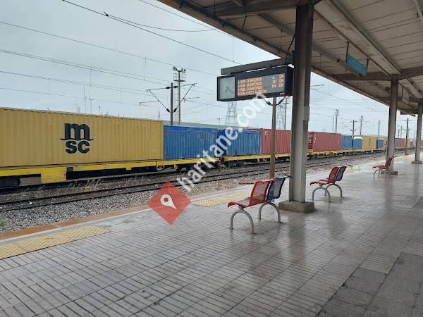 Aliağa'dan gelecek treni beklemekten bıktığım, kaçak geçişlerin çok olduğu, sürekli rüzgar alan, para yükleme makinesinin her daim arızalı olduğu, güvenliklerin makara için orada bulunduğu dandik bir istasyon. Bir de karşıda çay bahçesi var. Sakın çok ters birisi, sürekli müşterileri azarlıyor.
