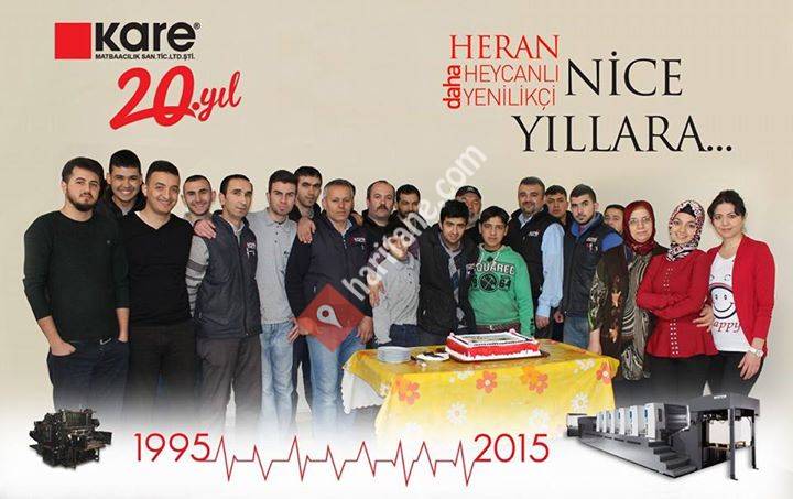 Kare matbaa müşterilerine karşı tecrübe ve bilgisini deneyimli kadrosu ile destekleyerek büyümeyi hedefleyen bir matbaadır. Tamamen kendisine ait, en son teknolojiye sahip makine parkuru, 2100 m² kapalı alanı ve 30 personeli ile faaliyet göstermektedir.