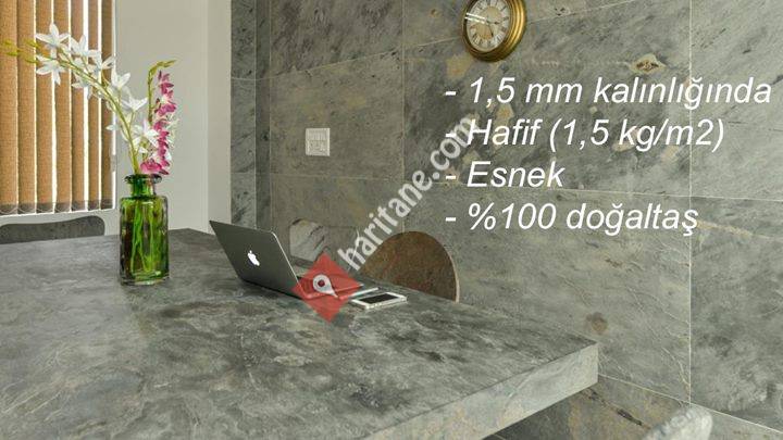1,5 mm kalınlığında, hafif, esnek, %100 doğal taş