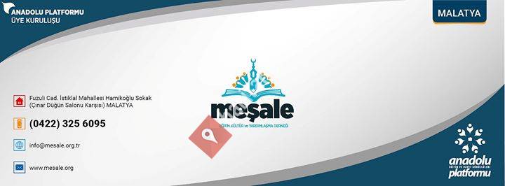 MALATYA MEŞALE EĞİTİM VE YARDIMLAŞMA DERNEĞİ ülke genelinde çok sayıda derneği bünyesinde barındıran ve 2009 yılı içinde birinci genel kurulunu yapan ANADOLU EĞİTİM VE DAVET GÖNÜLLÜLERİ PLATFORMU' nun da üyesidir.