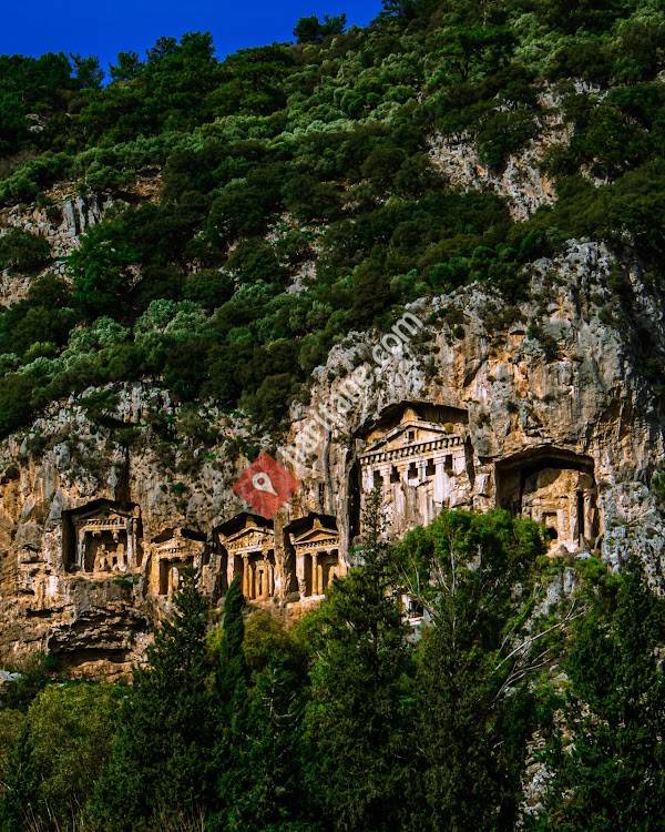 Dalyanda çay kenarından rahatça görebileceğiniz,dağlar içerisine oyulmuş taş mezarlar,eşsiz bir manzara. Zamanınız varsa tekne ilerde yakından görme imkanınız var.Teknelerin ve çayın manzaranın keyfini çıkarın