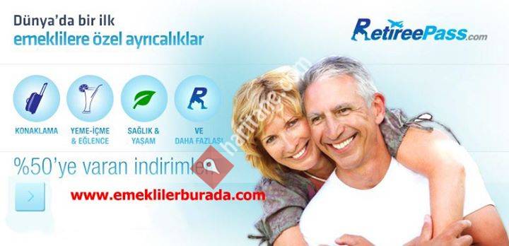 Bütün emeklilelere özel; Yeme & İçme, Konaklama, Check-Up & Tarama Merkezleri, Hobi Kursları, Sosyal Aktiviteler ve Marka Ürünler %70'e varan indirim ayrıcalıklarıyla www.retireepass.com 'da sizleri bekliyor.